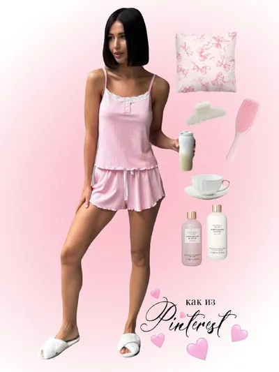 ⭐Пижамка с шортами из хлопка и вискозы Цена: 1445₽ 5300₽ Рейтинг: 4.9 💜 Артикул 🛒: 297168443 🔸Самый нежный и романтичный цвет - pink marshmallow 🔸Невесомая на теле, в составе хлопок и вискоза