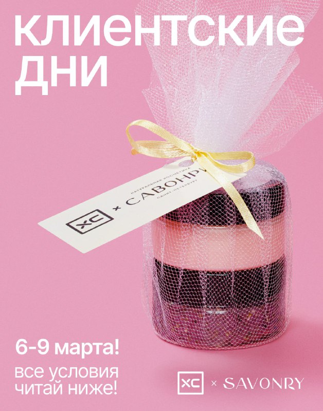 С 6 по 9 марта при покупке от 2000 рублей в магазинах ХС вы получите в подарок набор миниатюр от Savonry. Внутри — сахарный скраб для тела, крем-йогурт и разные ароматы (как повезёт, но мы уверены — л