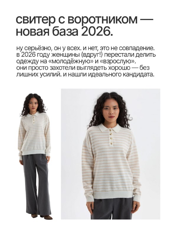 Мода становится взрослее. В хорошем смысле. Главный тренд этого года — не громкий и яркий, а тихий и уверенный. Свитер с воротником теперь носят все. Почему он победил? Раскладываем по полочкам и дели