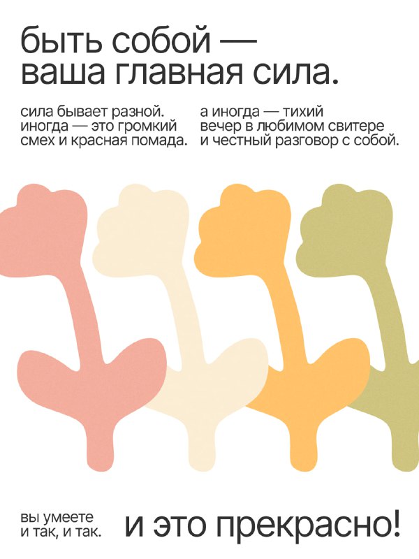 Быть женщиной — это не про дату в календаре. Это про каждый день. Про умение собираться, когда тяжело, и расслабляться, когда можно. Про любовь к себе во всех проявлениях. Мы рядом и всегда за вас.