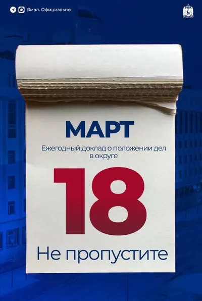 📌 Среда, 18 марта, 12:00 Ровно через неделю Дмитрий Артюхов представит ежегодный доклад о положении дел в округе. Губернатор поделится планами на год и расскажет о том, что сделано. В зале будут при
