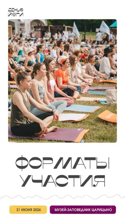 Здоровье и Фитнес21 июня 2026 — 12 Международный День Йоги в России 📍Музей-заповедник «Царицыно» БИЛЕТЫ: yogadayrussia.com