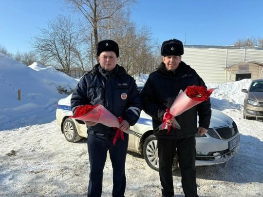 Вместо проверки документов автоледи получили цветы: в преддверии 8 Марта сотрудники ГИБДД устроили приятный сюрприз.