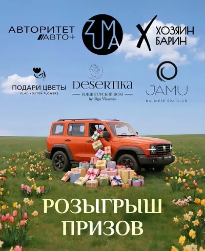 🌸 Весенний конкурс от Авторитет-Авто+ и партнёров! Мы снова объединились с лучшими проектами Владивостока, чтобы порадовать вас подарками, от которых невозможно отказаться! 💫 🎁 Призы для победите