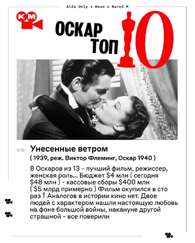 Оскар 2026 войдет в историю как один из лучших по уровню фильмов. Он вдохновил меня вспомнить победителей прошлых лет и вот для любимых подписчиков Alfa Only & Кино с Катей М. ⚪ - Топ-10 лучших картин