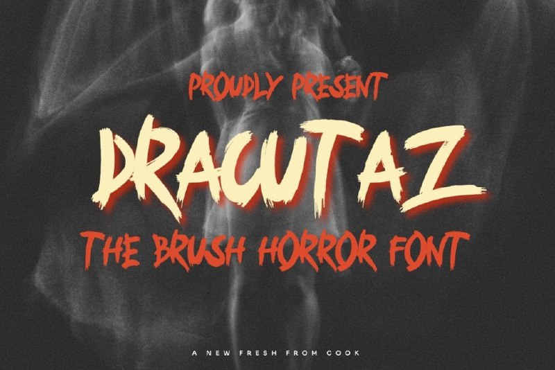 Шрифт «Dracutaz» by Dhabee Studio А это нарисованный вручную шрифт для постеров тематики ужасов. Бесплатен для любого типа использования. Поддерживает только латиницу, цифры и часть спец. символов.