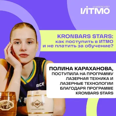 💪 Думаешь, с твоими достижениями можно поступить только в вуз со спортивным направлением? А вот и нет. В Университете ИТМО мы уже пять лет раздаем крутую стипендиальную программу Kronbars Stars, ко