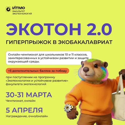 Возвращение легенды 🏆 Уже в конце марта пройдёт пятый онлайн-чемпионат для школьников Экотон «Гиперпрыжок в устойчивое развитие» в новом формате! Экотон — проект факультета Экотехнологий ИТМО, кото