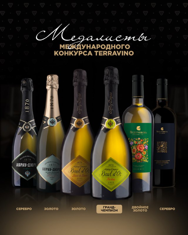 🍾 Продолжаем делиться нашими победами на международном конкурсе TERRAVINO: 🏆 Brut d’Or Riesling 2022 — Гранд-чемпион, двойное золото и звание лучшего в своем ценовом сегменте. 🥇 «Винодельня Веде