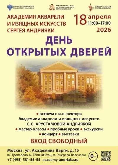 🔥 Друзья, уже совсем скоро, 18 апреля, в Академии акварели и изящных искусств Сергея Андрияки пройдет День открытых дверей! Мы будем рады видеть вас всех! Начало в 11:00. Приходите, вход свободный!