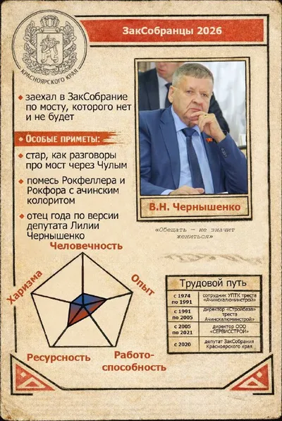 В #11 Ачинском округе Чернышенко 100% отправится на выход. Во-первых, ему глубоко за 70. Во-вторых, он из старой партэлиты, а таких Котюков не особо любит. В-третьих, зачем он такой Русалу? Партии вла