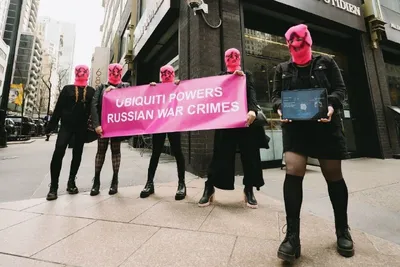Pussy Riot провели антивоенную акцию у офиса компании Ubiquiti Вчера в Нью-Йорке участницы группы Pussy Riot провели акцию возле офиса компании Ubiquiti на Манхэттене. Они потребовали привлечь компа