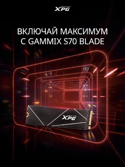 Ни на что не намекаем, просто показываем XPG GAMMIX S70 BLADE с интерфейсом PCIe Gen4, скоростью до 7400 МБ/с и объёмом до 8 ТБ. Мы не хвастаемся — просто показываем! 🌚