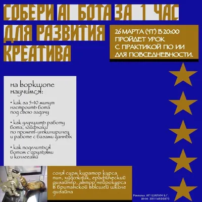 Как прокачать креатив с помощью ИИ и не тратить время в пустую? Разберёмся на практическом воркшопе 26 марта (четверг) в 20:00: «Собери своего AI-бота для идей и задач в Gemini». Спикер: Соня Сурм