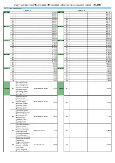 Стартовый лист Чемпионата и Первенства СФО | 11 марта Стартовые листы и результаты — на сайте ФГР: 🔸Первенство СФО 🔸Чемпионат СФО 📺 Трансляция — в сообществе Спортивная аэробика России #спортивнаяа