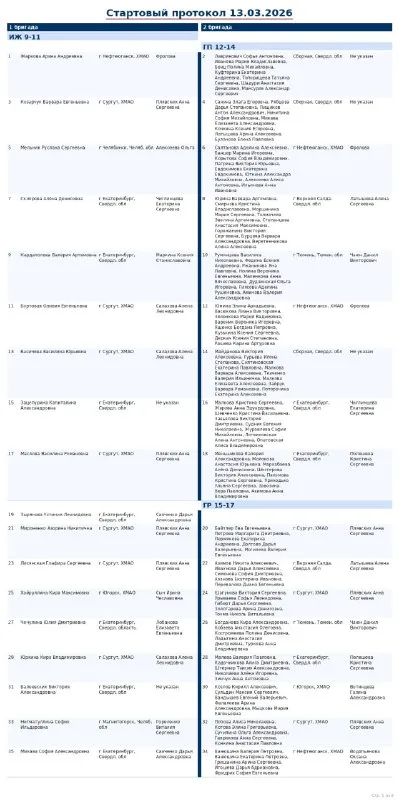 Стартовый лист Чемпионата и Первенства УФО | 13 марта Стартовые листы и результаты — на сайте ФГР: 🔸Первенство УФО 🔸Чемпионат УФО 📺 Трансляция — в сообществе Спортивная аэробика России #спортивная