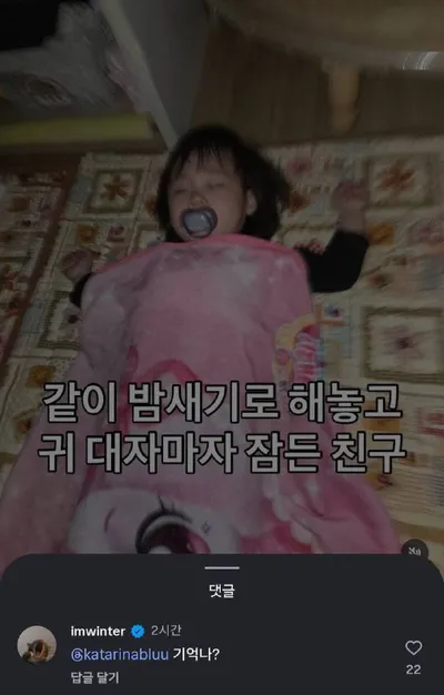 винтер упомянула карину в комментарии в инсте ! "друг, который сказал, что мы будем бодрствовать всю ночь вместе, но заснул, как только его голова коснулась подушки" ⭐️: @/katarinabluu ты помнишь?