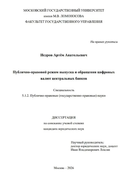 #эп_материалы Диссертация Недрова Артёма Анатольевича "Публично-правовой режим выпуска и обращения цифровых валют центральных банков" С работой можно ознакомиться здесь. В диссертации рассматривают