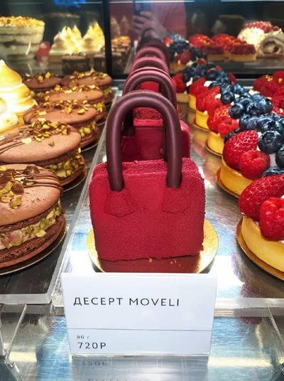 В udcкафе обнаружена самая стильная коллаборация этой весны с брендом MOVELI🌸 Теперь после шопинга можно забежать за кофе и вкусной «сумочкой» – десертом с нежным миндальным бисквитом, шоколадным му