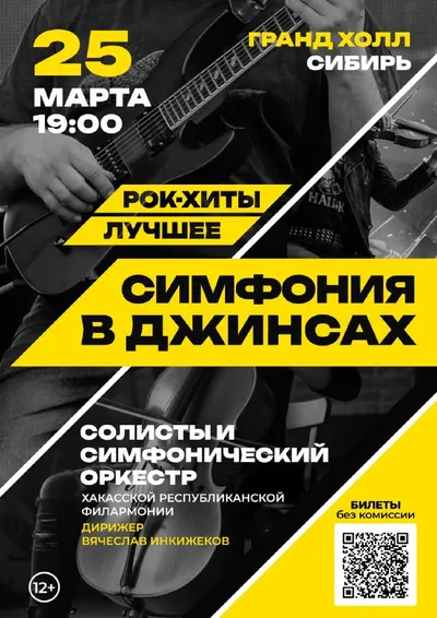 В Красноярске вновь грядет праздник симфо-рока!🎉 25 марта в «Гранд Холле Сибирь» — самые яркие хиты мировой и отечественной рок-музыки! Премьера новой программы «Симфония в джинсах: рок-хиты. Лучшее