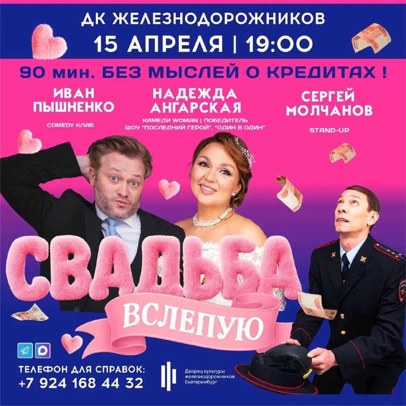 Спектакль «Свадьба вслепую» ⏰15 апреля (ср) в 19:00 📍ДК Железнодорожников, ул. Челюскинцев, 102 💵Билеты: от 1000р. 🔥Скидка 20% по промокоду АНГАРСКАЯ 🎫Билеты по ссылке - https://ekb.qtickets.eve