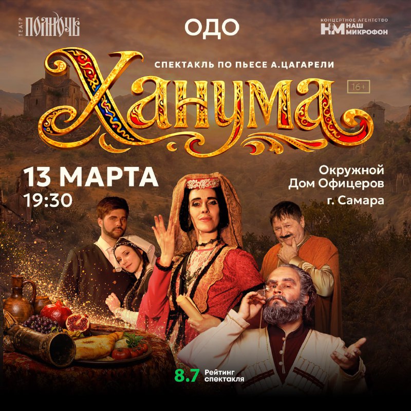 Легендарная комедия «Ханума» ⏰13 марта (пт) в 19:30 📍Окружной Дом Офицеров, ул. Шостаковича, 7 💵Билеты: от 600р. 🔥Скидка 15% по промокоду 171 🎫Билеты по ссылке - https://gostandup.ru/samara/eve