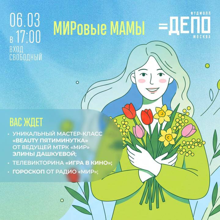 Праздничное мероприятие «МИРовые мамы» Вас ждёт незабываемый вечер, полный ярких сюрпризов, увлекательных мастер-классов и отличного настроения! В программе мероприятия: 🔸очаровательная ведущая Эли