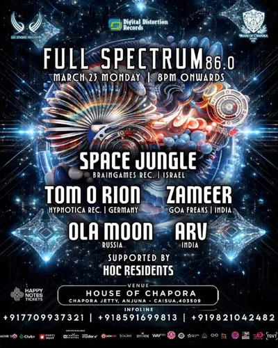Сегодня, 23 марта, Чапора👽 Воины танцпола в понедельник вечером Full Spectrum 86.0 Line up: Space Jungle (Braingames records,israel) Tom O Rion — Hypnotica Rec. | Germany Zameer — Goa Freaks | India