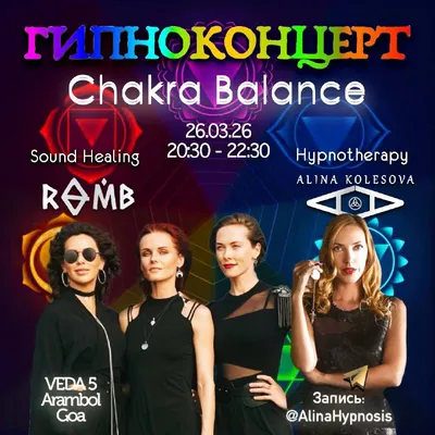 Дорогие Goa People ❤️ Приглашаем на заключительный гипноконцерт по теме «CHAKRA BALANCE» 🧘♀️ ~ 26 марта, 20:30-22:30, VEDA 5 Wellness Retreat Resort, Goa, Arambol ~ Гипноконцерт - это авторский п