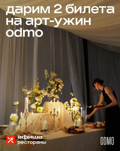 Дарим 2 билета на арт-ужин в ODMO Победителя розыгрыша 24 марта ждет особенный вечер! В этот день в особняке на Китай-городе пройдет арт-ужин, во время которого за бокалом игристого можно узнать о на