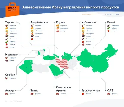 Представляем карту альтернативных поставщиков иранских продуктов. В условиях роста цен на некоторые импортные продукты на фоне затрудненных поставок из Ирана сети ищут альтернативные направления пост