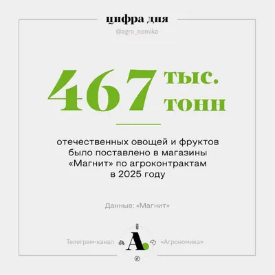 «Магнит» увеличил в 2025 году поставки овощей и фруктов по агроконтрактам на 15%. ⚫️ Ритейлер подвел итоги работы по агроконтрактам за 2025 год. Цифры говорят о том, что долгосрочные отношения с сел