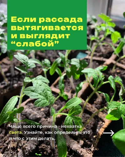 🌱Если рассада вытягивается и выглядит слабой - в большинстве случаев ей не хватает света. Это базовая история в начале сезона, и важно не пропустить момент: чем раньше заметили — тем проще исправить