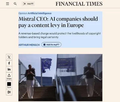💰 Налог на контент из интернета для работающих в Европе ИИ-компаний предлагает ввести CEO французского стартапа Mistral Артур Менш. Стартапы из США и Китая свободно используют данные из сети для сво