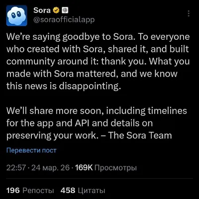 💬 OpenAI закрывает отдельную соцсеть Sora с короткими ИИ-роликами — отключат также модель и в API. «ИИ-ТикТок» от стартапа прожил чуть меньше полугода. Это согласуется с недавними утечками о смене