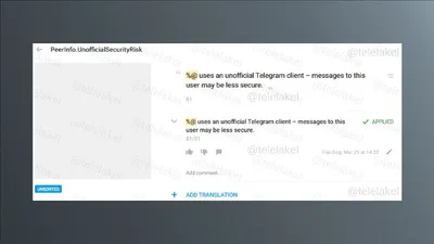 ✈️ Telegram начнет предупреждать пользователей, если собеседник использует неофициальный клиент. Упоминания сообщений нашли в файлах локализации для iOS. Вероятно, это связано с недавним скандалом во