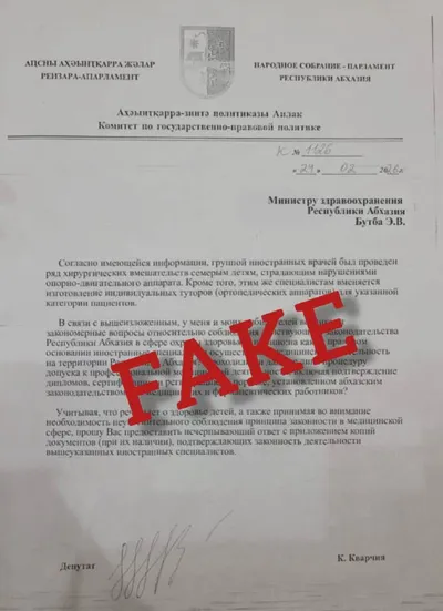 РАЗОБЛАЧЕН ОЧЕРЕДНОЙ ФЕЙК ПРОВЛАСТНЫХ АНОНИМОВ Провластные анонимные ресурсы распространяют изображение документа, якобы за подписью депутата Кана Кварчия исходящего из Парламента. По данному факт
