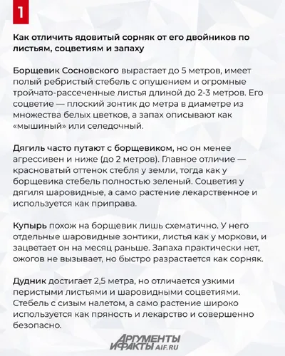 Как отличить борщевик от его двойников С 1 марта 2026 года в России действует закон, обязывающий владельцев земельных участков выявлять и уничтожать борщевик Сосновского — одно из самых опасных расте