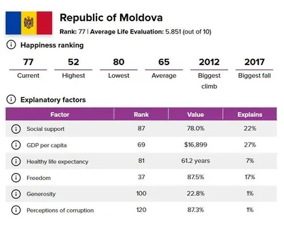 👆Рейтинг самых счастливых стран: где в нём Молдова? 🇲🇩Молдова заняла 77 место в рейтинге самых счастливых стран мира «World Happiness Report», ежегодно составляемом под эгидой ООН. С прошлого года