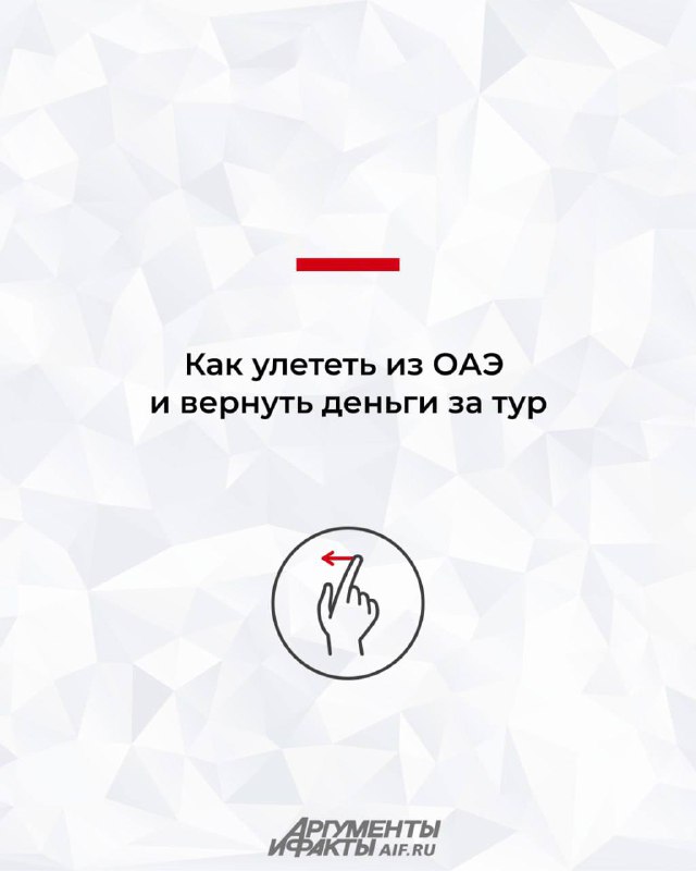 Как улететь из ОАЭ и можно ли вернуть деньги за тур Главные вопросы сейчас: как выбраться из «горячей точки» на вывозных маршрутах и можно ли вернуть деньги за испорченный отпуск? Aif.ru вместе с юри