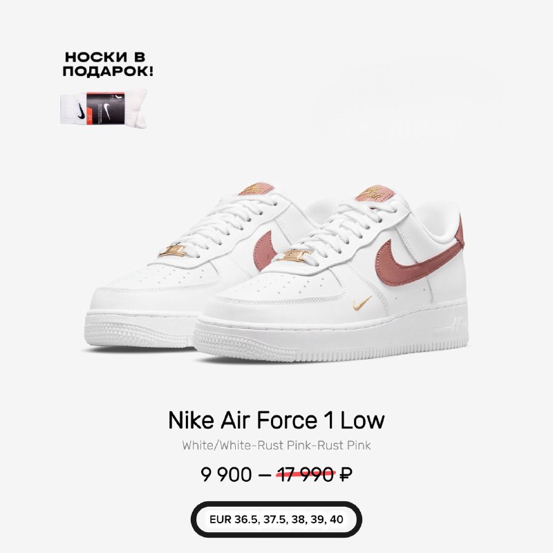 🥰 Новинка Nike Air Force 1 ‘07 Rust Pink CZ0270-103 В наличии, оригинал ❗️ Размеры: 36.5 по 40 Цена: от 9990₽ (вместо 17990) 👉 БЫСТРЫЙ ЗАКАЗ • каждому покупателю носочки Nike Everyday Cushioned