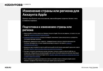 ⚡️ Россияне могут без труда сменить регион аккаунта Apple! Теперь сменить регион аккаунта Apple можно без необходимости отмены платёжного метода и активных подписок. Как сообщает Код Дурова, пользова