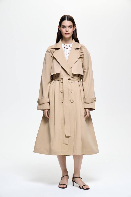 Тренч DREAMS by Alena Akhmadullina с акцентными плечами — современное прочтение классической формы. Собранная линия плеча делает силуэт выразительнее и увереннее, а пояс деликатно обозначает талию.