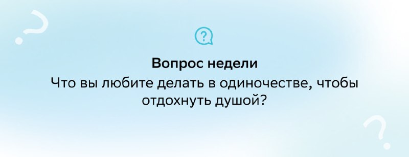 ✉️ Вопрос недели Иногда лучший отдых — это тишина и время наедине с собой. У каждого есть свои способы восстановиться: кто-то читает, кто-то гуляет, кто-то слушает музыку или занимается чем-то спокой