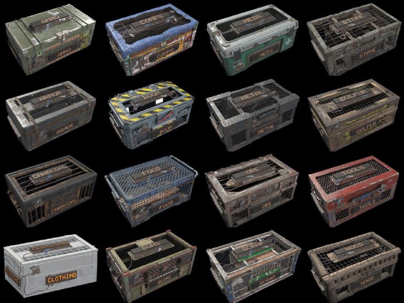 Новые ящики из DLC уже на подходе! 📦🔥 Слили иконки всех 16 ящиков из грядущего Boxes DLC. Выглядят кайфово, каждый под свой тип лута: ресы, пушки, медицина — теперь сортировать добро будет намного