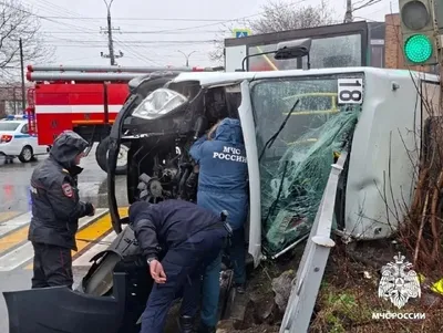 ❗️Пять человек пострадали в аварии с микроавтобусом во Владикавказе На улице Гадиева столкнулись Lada Granta и пассажирский микроавтобус, следовавший по маршруту № 18. От удара микроавтобус опрокинул