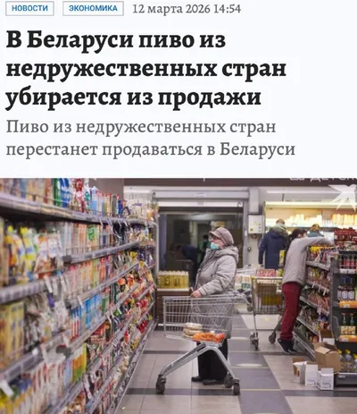Запрет на продажу пива из Евросоюза Так начнётся второй месяц весны в Белоруси, где бацька решил, что правильно и духовно пить местное. Под запретом с 1 апреля окажется пиво из Бельгии, Германии, Че