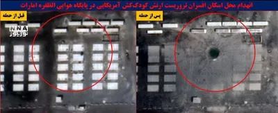 Одна тяжелая иранская ракета уничтожила половину военной базы США в ОАЭ, оставив воронку диаметром 10 метров (снимок справа). Это - один из ответов Ирана на заявления министра войны США Хегсета, утвер
