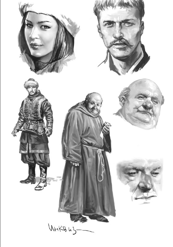 А вот эскизы персонажей в "Золотые костры" от Ильи Воронина. Некоторые даже могут их угадать не заглядывая в ответы к художнику.