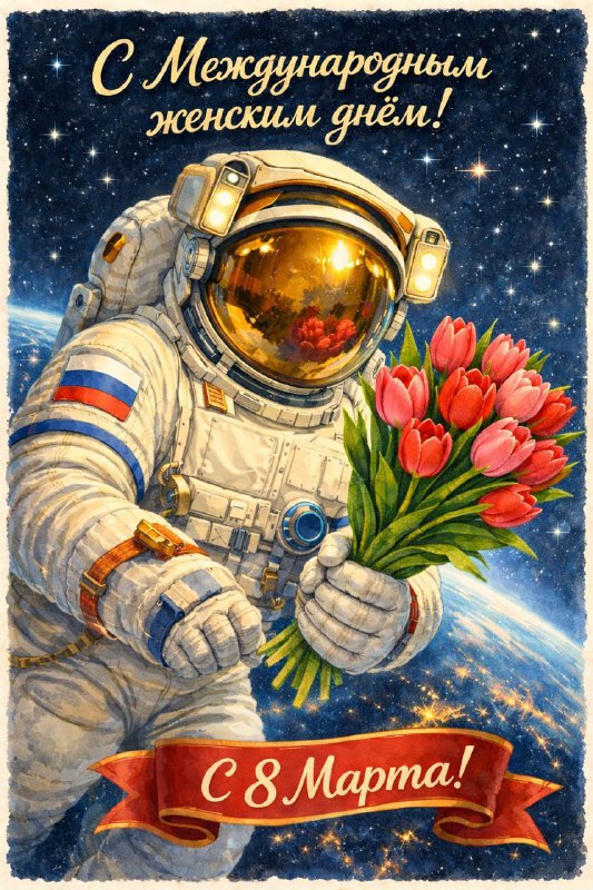🌷 Дорогие девушки, поздравляю вас с Международным женским днём! Работая в отряде космонавтов, я каждый день вижу потрясающих женщин. Врачи, инженеры, психологи и специалисты, которые готовят нас к